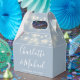 Elegant wedding favour box featuring pretty string lights, chic signature script names and special date on a dusty blue background. You can personalise with your own thank you message on the reverse. A perfect way to say thank you to your guests! Designed by Thisisnotme©