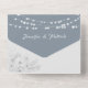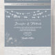 Set the tone for your special day with this rustic dusty blue wedding invitation. Featuring whimsical string lights and vintage silver floral lace accents, this all-in-one design offers a cohesive and elegant look for your celebration.