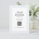 Elegant QR code wedding RSVP card features graceful typography design that blends classy script and modern sans serif font on dusty blue stripes background, simple and unique, great for traditional vintage wedding, modern classic wedding and boho retro wedding,
