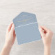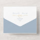 A modern and romantic dusty blue all-in-one wedding invitation featuring a minimalist gold rope heart and a detachable wedding mini-timeline your guests can take with them to the celebration. Designed for couples who want simplicity, elegance, and practical convenience in one stylish piece.