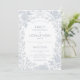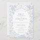 Dusty Blue Toile De Jouy Border QR Code Wedding. This elegant design has a pale blue floral toile border encompassing the words which you can easily personalise. Add your QR code to your wedding website on the back so your guests can RSVP and see all the details online. The code will automatically update when you change the sample URL to that of your own wedding website.