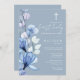Dusty Blue Transparent Floral First Holy Communion Invitation