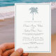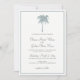 Dusty Blue Tropical Palm Tree Destination Wedding Invitations With Ocean Waves On Back. Elegant Beach Wedding Invitation Cards