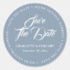 Dusty Blue Typography Script Wedding Save The Date Classic Round Sticker