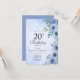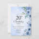 Dusty Blue Watercolor Floral Chic 20th Birthday Invitation