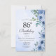 Dusty Blue Watercolor Floral Chic 86th Birthday Invitation