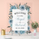 Dusty blue watercolor flowers wedding welcome acrylic sign