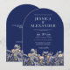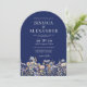 Dusty Blue Watercolor Wildflower Navy Arch Wedding Invitation