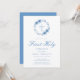 Dusty Blue Watercolor Wreath First Communion Invitation