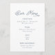 Elegant dusty blue wedding bar menu card designed for modern and timeless wedding receptions. This minimalist drink menu features graceful script and classic typography in a soft dusty blue color palette, creating a refined and sophisticated look for wedding bars and reception tables.