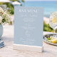 Create a refined and elegant bar display with this dusty blue wedding bar menu featuring soft white typography.