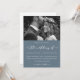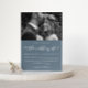 Beautiful dusty blue and white wedding invitation. This simple invitation is a chic way to let invited guests know of your upcoming marriage ceremony. This trendy announcement features lovely "the wedding of" white calligraphy script on a smoky blue background with the couple's photo, and a white back of the card.