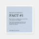 A unique and fun idea to upgrade your wedding napkins. Personalise these napkins with facts about the bride and groom. Make multiple fun facts on napkins about the newlyweds on their wedding, use this template and have guests talking, a great ice breaker, have them find more throughout the day. The number can be customised so you can make several. Simple with modern typography with black type on dusty blue.