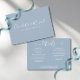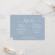 An elegant wedding details information enclosure card personalized with your special details set in stylish typography and your names and wedding date on the reverse on a dusty blue background. You can customize the background to your favourite wedding theme color. Designed by Thisisnotme©