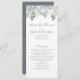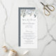 A long slim rack wedding ceremony order of service template. This design features a wedding ceremony dusty blue program, With a floral, dusty blue, boho botanical chic design with calligraphy script, an elegant, simple, order of service
