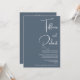 Set the tone for your special day with the Dusty Blue Wedding Invitation. Featuring a serene dusty blue background with elegant white lettering, this invitation beautifully showcases the couple's names, wedding date, and venue on the front. The back provides additional details for your guests, keeping everything organised and stylish. Perfect for modern, classic, or romantic weddings, this invitation brings a sophisticated, timeless feel to your wedding stationery.