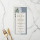 Simple, modern, minimalist, botanical, elegant sage green and dusty blue wedding menu with giant monogram - initials at the top, greenery and trendy calligraphy script.