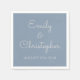 Dusty Blue and white custom wedding or reception dinner Napkins. The text of the dusty blue simple and elegant Napkins can be updated and customised with your name and wedding date.