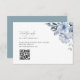 A QR code RSVP wedding card with simple black lettering, dusty blue watercolor flowers.