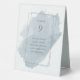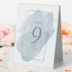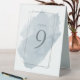 Dusty blue watercolor splash with a double silver border table number with a seating chart on the back all in a serif elegant font ready for your customisation. Check out our store for more matching items.