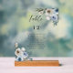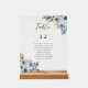 Elegant dusty blue floral wedding table number and seating chart with guest list