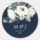 Dusty Blue & White Botanical Monogram- Navy Classic Round Sticker