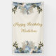 Dusty Blue White Floral Happy Birthday Vertical Banner