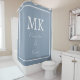 Dusty Blue White Monograms Modern Minimal Trendy Shower Curtain