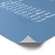 A trendy dusty blue background. Decorated with white stars. Personalise and add the name of the bride and groom, add your guests names. White text.