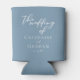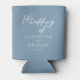 Dusty Blue White Typography Coastal Wedding Can Cooler