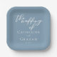 Dusty Blue White Typography Coastal Wedding Paper Plate