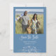 Dusty Blue White Wildflower Photo QR Code Wedding Invitation
