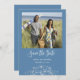 This minimal wildflower floral wedding save the date card is elegant and simple. This dusty blue theme will look beautiful with simple wisps of baby's breath or as a complement to a colourful bouquet of your favourite flowers. The QR code makes it easy for guests to get the details for your special day