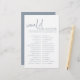Elevate your bridal shower with the Dusty Blue & White Would She Rather Game - a simple, sophisticated twist on a classic party game. This stylish game brings a touch of elegance to your bridal shower celebration. With its clean, minimalist aesthetic, it seamlessly complements any modern, chic bridal shower theme. But don't let the refined look fool you - this game is packed with fun, thought-provoking questions that are sure to get everyone laughing, chatting, and bonding. Whether the guest of honour loves fashion, food, or romance, the versatile question prompts will speak to all her interests. Surprise and delight your bridal party with an unforgettable shower that balances style and substance.