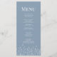 The Dusty Blue Wildflower and Butterflies Menu Card is personalised with your own menu items in a modern boho font, adding a touch of elegance to your wedding table setting.