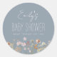 Dusty Blue Wildflower Boho Baby Shower In Bloom Classic Round Sticker