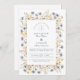 This elegant design features soft blue and golden wildflowers framing a minimalist layout — perfect for rustic, countryside, or romantic garden weddings. A refined blend of simplicity and nature’s beauty, ideal for couples who love a modern botanical touch.