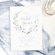 Elegant delicate watercolor wildflower wreath frames your event details. Pastel palettes of soft yellow, off white, sage green, dusty blue, and botanical greenery, simple and romantic. Great floral bridal shower invitations for modern rustic party, boho country garden party in spring and summer.