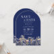 Dusty Blue Wildflower Wedding Arch Navy Save Date Invitation