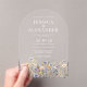 This Dusty Blue Wildflowers Elegant Arch Acrylic Wedding Invitation showcases delicate watercolor wildflowers in shades of dusty blue, purple and yellow on clear acrylic, complemented by contemporary typography in white. It is fully customisable with the couple's names, wedding details and wedding website. The formal design and wording will add a touch of elegance to your wedding celebration.