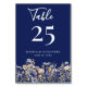 Dusty Blue Wildflowers Elegant Script Navy Wedding Table Number