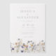 This Dusty Blue Floral Elegant Vellum Wedding Invitation showcases delicate watercolor wildflowers in shades of dusty blue, purple and yellow on vellum, complemented by contemporary typography in grey. It is fully customisable with the couple's names and wedding details. The formal design and wording will add a touch of elegance to your wedding celebration.