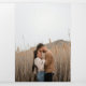 Elegant all in one wedding invitation featuring a clean and timeless design with your monogram inside of a wreath crest. Use the template to add your favourite photos.