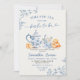 Dusty Bue Chinoiserie Bridal Shower Tea Party Invitation