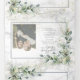 Create the perfect wedding invitation with this trendy dusty blue eucalyptus botanical and faux gold greenery watercolor design, featuring a faux Carrera marble background, hand lettered script typography and faux gold dust. Your favorite engagement photo is displayed Wedding details section. Contact designer for matching products. Thank you sooo much for supporting our small business, we really appreciate it!