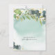 Modern wedding bridal shower invitations featuring a dusty greeny/blue watercolor wash, elegant green botanical leaves, splashes of faux gold foil, and a simple bridal shower party template that is easy to personalise.