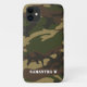 Dusty drab green camo, camoflauge print background pattern, with charcoal dark grey, green and dirt brown. Personalised gifts with an army, military or outdoorsman theme, great for manly men, sporting guys or paintball, hunting and fishing enthusiasts. Play in the dust and dirt out in the woods or on a gravel road and blend in with the outdoors.