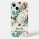 Dusty green cream flowers name script Case-Mate iPhone case