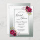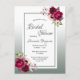 On front: A trendy sage green gradient with a sage green and white frame. Decorated with flowers, roses in burgundy and rose gold. Templates for the bride to be's name and party details. The name is written with a hand lettered style script, dark grey coloured letters. Large text: Bridal Shower.