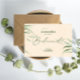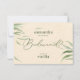 This stylish-will-you-be bridesmaid card design has dusty green foliage on a beige craft paper texture with customisable, elegant typography in dark green. It is a sophisticated and classy design that you can edit text, images, and fonts. This design evokes an organic feel and simple elegance.